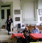Proverbe galicien que notre président aurait pu citer en évoquant les 18 années d’organisation de cette réunion scéenne. On s’est rappelé le martèlement de la pluie sur la tente où chantait “El Toro” -qui a dû interrompre son récital- ou encore l’année fatale de la “suspension”. Mais depuis plusieurs années, la complaisance de voisins de notre ancien président nous permet d’avoir accès à leur véranda. N’imaginez pas ces quelques mètres carrés gagnés sur une maigre pelouse entre le garage et la haie qui sépare du voisin. Il s’agit d’une pièce vitrée de 50 m2 environ, haute d’un étage, donnant sur un vaste jardin en pente. On pense plutôt à une salle de bal dans un film russe ou polonais. Jean-Louis a évoqué “Cendres et Diamants “ de Wajda (1958). Il pouvait pleuvoir des trombes sur Sceaux. Nous étions à l’abri.