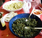 La partie matérielle avait été d’abord représentée par du tinto de verano, c’était la saison, malgré la réalité météorologique -Diable ! Le changement climatique! Puis des plats maison, une parfaite tortilla cuisinée par Françoise, LE salmorejo de Chantal, des rillettes de poisson, un plat d’épinard aux pois chiches, de la manzanilla et des vins espagnols, les merguez et les côtelettes d’agneau grillaient sur un barbecue protégé de l’onde céleste par un vaste parasol blanc.